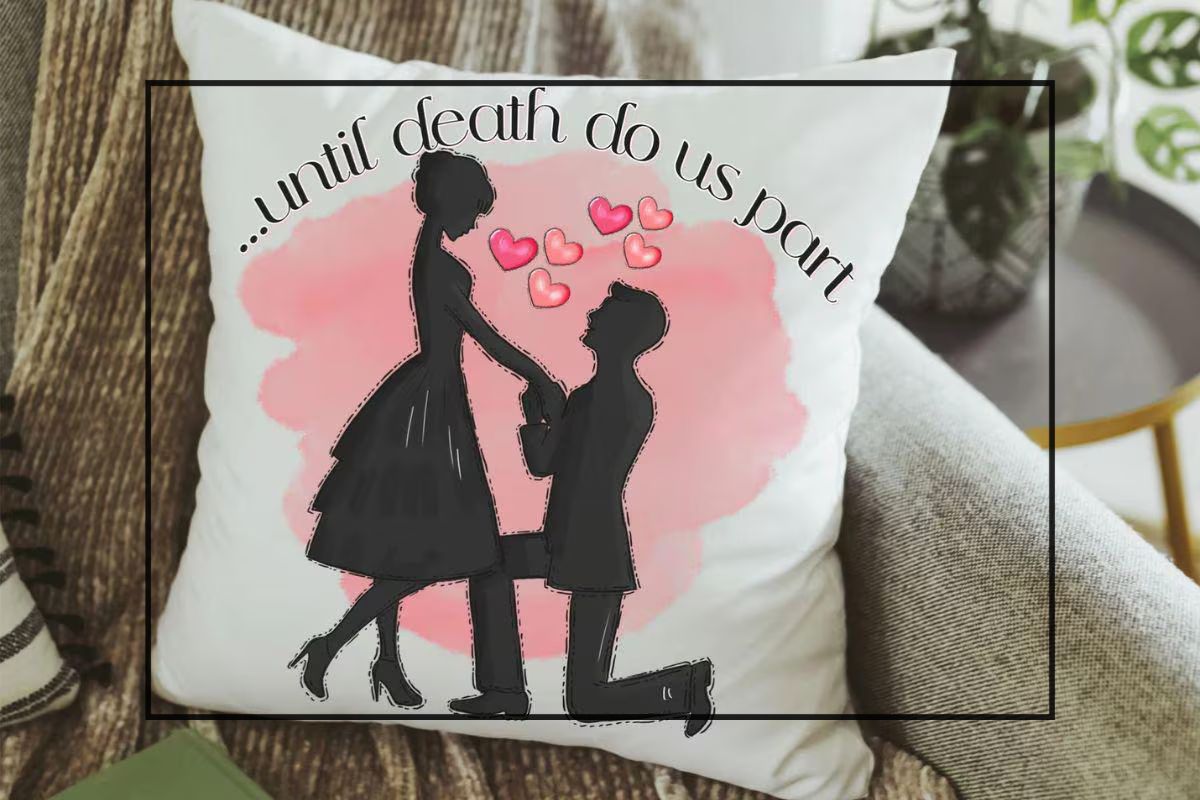 One of the most popular engagement gift ideas right now is romantic quote decor. Pieces with meaningful phrases about love make beautiful reminders of a couple’s commitment to each other. Decor featuring romantic phrases like “Until Death Do Us Part” has become especially popular for couples who love bold, meaningful decor. A decorative pillow with this phrase can add both personality and romance to a bedroom while serving as a lasting keepsake of their engagement. These types of gifts work especially well because they combine comfort, style, and symbolism in one simple piece.
