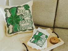 A festive St. Patrick’s Day refresh for a couch or sofa, with decorative pillows and matching towels that make it easy to carry the look into other spaces. Green plaid and shamrock details keep it classic, while the coquette bow adds a fun touch. A simple Irish-inspired gift for friends or a…
