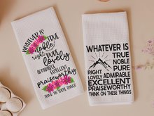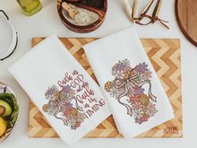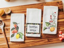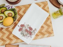 Red poppy and gladiolus florals bring a muted, beautiful touch to these August birth flower kitchen towels. A thoughtful birthday gift for daughters, sisters, or friends, and a beautiful way to celebrate her special month with functional style for the kitchen or guest bath.