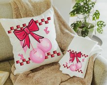 A seasonal refresh for a couch, kitchen, or bedroom room, with a pillow and towel set that is easy to gift. Our Love You Cherry Much design keeps it personal and coordinated across spaces. A cute Valentine gift for daughters, girlfriends, or friends who love cherry home decor.